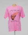Physical DescriptionPink t-shirt with a screen printed logo in black and orange depicting a basketball on fire as it goes through a hoop. Framing the design is the phrase "PLUTO: Players Like Us Take Over." In the bottom right corner there is a trademark logo screen printed that says "ALJ."