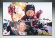 Physical DescriptionPhysical DescriptionPhotograph mounted on a standing plastic board depicting a man on top of a mountain holding a picture of the President and inscribed "World leader Obama in the top of the World... 21/05/2009"