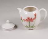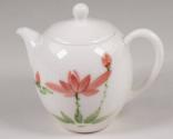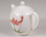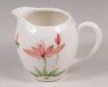 Physical DescriptionWhite porcelain tea set compose of one teapot with lid, a cream pot, and six cups all painted with pink flowers and green leaves and stems.