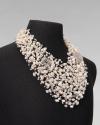 Physical DescriptionPhysical DescriptionMulti-strand floating pearl necklace made of saltwater (Akoya, Keshi) and freshwater pearls, 18-karat white gold beads, and two rose shaped silver brooches.