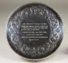 Physical DescriptionPhysical DescriptionSilver tray inscribed with a congratulatory message from Agnaldo Timoteo, a councilman for Sao Paulo and singer, surrounded by a floral design. Tray has three feet and a burnished pattern on the bottom.