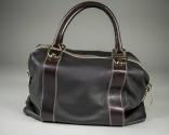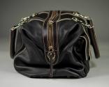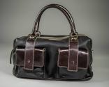 Physical DescriptionPhysical DescriptionBrown and black Italian leather purse. Black, duffel-bag-style body with two brown handles and brown leather details that closes with a zipper. There are two large black square pockets on the front with brown flaps that close with a magnetic clasp. Comes with optional carrying strap made from brown woven material.