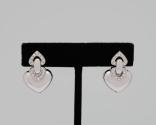 Physical DescriptionHeart-shaped diamond necklace and earring set. The necklace has a heart-shaped pendant on a silver chain with small diamonds grouped together at the base of the pendant. The chain goes through a smaller heart at the top of the piece. The pair of heart-shaped diamond earrings have diamonds grouped together at the base of the pendants.