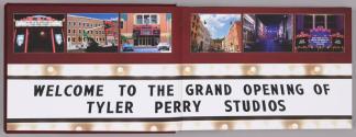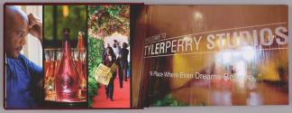 Physical DescriptionPhysical DescriptionHardcover book (.a) of images chronicling the grand opening of Tyler Perry Studios, bound with a shiny red metallic fabric hardcover in similar fabric slip case (.b). Title is surrounded in gold swirl motif.