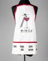 Physical DescriptionPhysical DescriptionWhite apron with red detailing and pockets across the bottom. In the center is an image of a cartoon woman falling into a large glass of red wine with a ladder leaning against the glass. Below the image is "W.I.N.O.S. - Women In Need Of Sanity" in black text. Printed on each pocket at bottom in black text is: KEYS, GLASSES, CORKSCREW, CELL PHONE, LIPSTICK.
