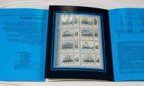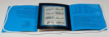 Physical DescriptionPhysical DescriptionCollectable pamphlet containing 8 Norfolk Island "Sailing Whaleships" stamps with illustrations of different ships. The cover depicts three sailing vessels on a body of water with a lush green landscape in the background.