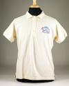 Physical DescriptionOff-white polo shirt with an embroidered patch in the left chest area that reads "OBAMAS IN THE HOUSE" with an image of the White House and "09." White plastic pearlescent buttons close the shirt at the collar.