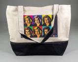 Physical DescriptionPhysical DescriptionCream canvas tote bag with black bottom and black exterior of straps. Screen printed on one side is a pop art colorful and repeating image of legal affairs correspondent Nina Totenberg. In the bottom right of the screen print is the NPR logo.