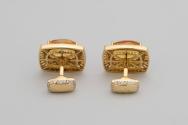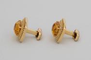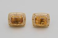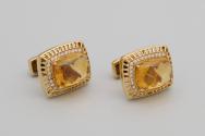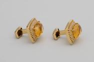 Physical DescriptionPhysical DescriptionA pair of yellow gold cufflinks with a rectangular citrine gem in the center bordered by diamonds. A row of small rectangular citrine gems line the rim. The toggle has diamonds around the edge.