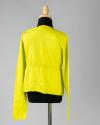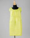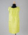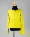 Physical DescriptionDress and cardigan set in a bright chartreuse green. The dress has gray threaded ruching at the front and the sweater has ribbing around the waist.
