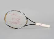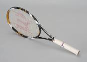 Physical DescriptionPhysical DescriptionWilson K Blade Team tennis racket with white grip, white and black frame with gold detailing. Strings across the face of the racket are white with a red W painted across. Information on the racket's recommended tensions and stringing are on the inside of the frame below the face but above the handle. Signed by Serena Williams on the handle and frame.