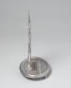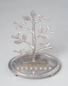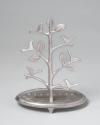 Physical DescriptionPhysical DescriptionSilver-toned metal Hanukkah (menorah) candle holder with tree sculpture that has birds and leaves on the branches in middle. On the base is etched a leaf motif and a row of indentations for eight candles with the indent for the helper candle in front, separating it from the rest. At the base of the tree is a plaque with a message to President Obama. Menorah is slightly raised on three feet.