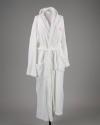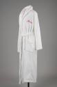 Physical DescriptionA white bathrobe with a belt with "Malia" embroidered on the left front of the robe in pink.