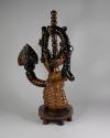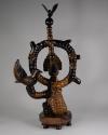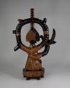 Physical DescriptionPhysical DescriptionWooden sculpture depicting a tree on a base with six feet and several carved birds. A carved black bird sits on a ball at the top of the sculpture, on what appears to be a ship's wheel formed from the tree's branches with several flowers and leaves attached to the obverse. There are two identical birds, one that sits inside of the wheel, and one that is attached to a branch that attached below the ship's wheel.