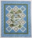 Physical DescriptionPhysical DescriptionMinnesota-themed quilt made of primarily blue, green, and brown fabric. Center pattern of diamonds and star patches contains dyed lakeside scenes with water, trees, and aquatic birds. Trim for the quilt is printed with the names of Minnesota lakes in various fonts and colors over a blue background. Reverse of quilt is a dappled blue fabric and has an embroidered message.