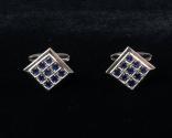 Physical DescriptionPhysical DescriptionDiamond shaped white gold cufflinks with a grid of nine equally spaced inset blue sapphires.