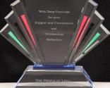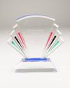 Physical DescriptionPhysical DescriptionGlass award with colors of the the Libyan flag and wording commemorating the relationship between the USA and Libya. A crescent moon and star are depicted in the black stripes on both sides.