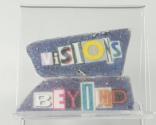 Physical DescriptionPhysical DescriptionA magnet made out of two pieces of sea glass. The top piece has a paper collage that spells out "Missions", while the bottom piece has a paper collage that spells out "Beyond." The two pieces are connected with a small piece of looped gold metal.