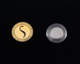 Physical DescriptionPhysical DescriptionGold-toned circular lapel pin with magnetic backing and a large S in the center. Engraved around the trim, following the curve of the circle, are the words "Nuclear Security Summit Seoul 2012".