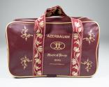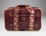 Physical DescriptionPhysical DescriptionMaroon bag with gold floral trim. The bag has handles and a zippered closure. The bag is intended to be used for a rug.