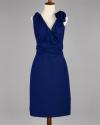 Physical DescriptionItalian-made indigo dress with a low cut neckline and a flower decoration of the same color pinned to the left shoulder.