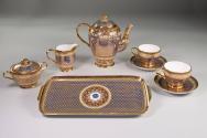 Inscriptions and MarkingsStamped on bottom of teapot, tray, and saucers: [manufacturer's logo]