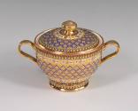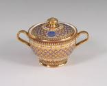 Overall - 3D (Sugar Dish with Lid (.e-f)) H 3 3/4 in x W 5 1/2 in x D 3 3/4 in (9.5 cm x 14 cm x 9.5 cm )