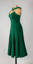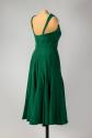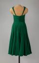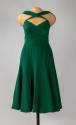 Physical DescriptionEmerald silk crepe flare dress with a criss-cross strap neckline. The dress has a built in boned bodice and structured underskirt.