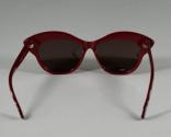 Physical DescriptionPhysical DescriptionPair of red cat-eye style sunglasses with snow leopard print graphic consisting of white with black spots around the top of the glasses and sides. Brown lenses.
