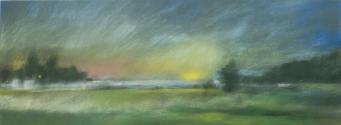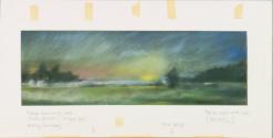 Physical DescriptionPhysical DescriptionChalk pastel artwork that depicts a morning landscape with grass in the foreground and trees on either side of a rising sun at the center of the scene.