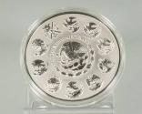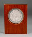 Physical DescriptionFine silver coin commemorating the Aztec calendar enclosed in a plastic case. The obverse is a sculptural relief of the National Shield of Mexico surrounded by text "Estados Unidos MexicAños" and laurels, which are surrounded by reproductions of the national shields used throughout Mexico's history. The reverse at center is embossed with a reproduction of the Aztec Calendar (or the Sun Stone) surrounded by text.