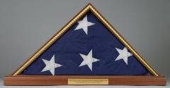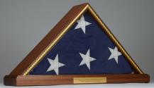 Physical DescriptionPhysical DescriptionAmerican flag that was flown over the US Capitol Building on the day of President Obama's Inauguration in 2013. The flag is folded into a triangle with the stars of the flag facing out and housed in a triangular display case. The case is brown wood with painted gold rope-like trim around the top two sides. Gold-colored plaque with descriptive text is attached to the front center of the case.