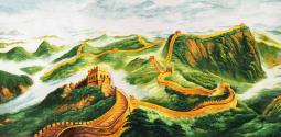 Physical DescriptionRolled scroll of silk-brocade embroidered artwork depicting the Great Wall of China winding through cloudy hills.
