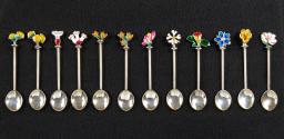 Physical DescriptionPhysical DescriptionSet of twelve sterling silver coffee spoons each with a unique enamel depiction of a native flower from the Qatar desert.