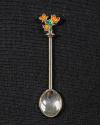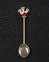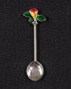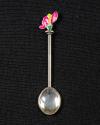 Sterling Silver Coffee Spoons with Enamel Depictions of Flowers