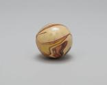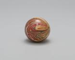 Physical DescriptionPhysical DescriptionPainted decorative sphere containing cream, red, black, gray, orange, and yellow stripes in a melted design. The interior of the decoration is made from the dried fruit of the Strychnos spinosa tree.
