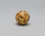 Physical DescriptionPhysical DescriptionPainted decorative sphere containing different shades of brown and dark blue splotches on a sand-colored background. The interior of the decoration is made from the dried fruit of the Strychnos spinosa tree.
