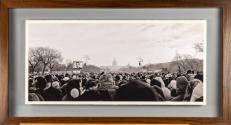Physical DescriptionPhysical DescriptionA framed photo enclosed in a glass and acrylic mount. The photo depicts a crowd during the 2009 Presidential Inauguration on the National Mall that captures the moment when the image of President Lincoln was displayed on screens.