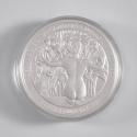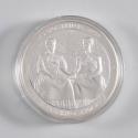 Physical DescriptionPhysical DescriptionSilver-toned commemorative coin with the obverse containing a debossed depiction of the painting "Las Dos Fridas" by Frida Kahlo surrounded by the words "Las dos Fridas, 1939, Frida Kahlo 1907-2007." The reverse of the coin contains a debossed depiction of the drawing "Desnudo con alcatraces" by Diego Rivera surrounded by the words "Desnudo con alcatraces - Diego Rivera, 1944 1kg Plata Pura Ley .999." The entire coin is encased in a plastic protector.