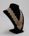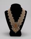 Physical DescriptionPhysical DescriptionFabric necklace decorated with plastic rhinestones and a glass pendant with a woven rose inside. The necklace closes with a metal clasp.