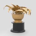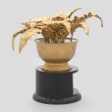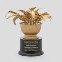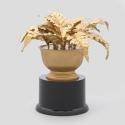 Physical DescriptionPhysical DescriptionA gold-painted plastic fern in a pot on a black trophy base with a plaque on the front inscribed with "President Barack Obama - Between Two Ferns with President Barack Obama. Congratulations on 20 million views and 8 million sign ups! March 11, 2014 - Funny or Die." Signatures in gold ink on bottom of base.