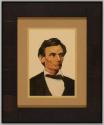 Physical DescriptionPhysical DescriptionFramed cross-stitch portrait of President Abraham Lincoln. Lincoln wears a brown suit with a brown bow tie and gazes in the distance to the right of the viewer. The background is cream. The cross-stitch is mounted in a brown wood frame under two textured tan mats.