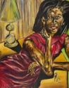 Physical DescriptionPhysical DescriptionOil painting depicting First Lady Michelle Obama wearing a red dress leaning to the right, her right arm is bent with her right hand resting on her neck. Her left arm is bent and folded underneath her right arm. There is a lamp in the background.