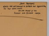 Inscriptions and MarkingsInscribed in black at upper right of reverse: Dear President, Words are not enough to express our appreciation for your hard work. We are proud of you Barack and Michelle Obama.