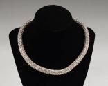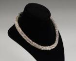 Physical DescriptionTube shaped necklace entirely encrusted with rows of faceted crystals with an iridescent sparkle.