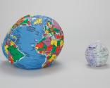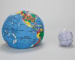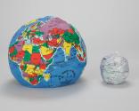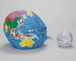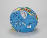 Physical DescriptionPlush pillow set depicting the Earth and Moon with labeled countries and geographic features. The Earth (.a) has a velcro opening in the side where the Moon (.b) can be stored. The Moon's print is primarily gray and blue, while the Earth has blue bodies of water and colorful countries.