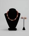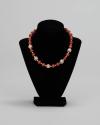 Physical DescriptionJewelry set of sterling silver and orange onyx. Includes a necklace (.a) with onyx stones and five interspersed ornate silver beads and round clip earrings (.b-c) with centered onyx inside silver decorated with wave designs.