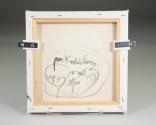 Physical DescriptionPhysical DescriptionPainting on canvas depicting a sheep's head in front of broad strokes of pink, orange, red, green, blue, and yellow. On the reverse there is a black line drawing of a sheep and a ram.