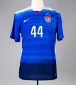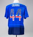 Physical DescriptionA U.S. Women's National Soccer Team jersey. Blue ombré colored jersey with white on the top and dark blue on the bottom, white mesh fabric strip along the sides under the arm, and triangular red accent on the bottom of v-neck. On the front is a number "44" in white with the Nike and U.S. Women's Soccer logo on either side. On the back is "Obama" in white and a large number "44" in U.S. flag pattern.