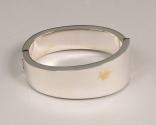 Physical DescriptionPhysical DescriptionSilver cuff bracelet that opens with spring and hinge on side. Top part of bracelet is slightly wider than bottom.